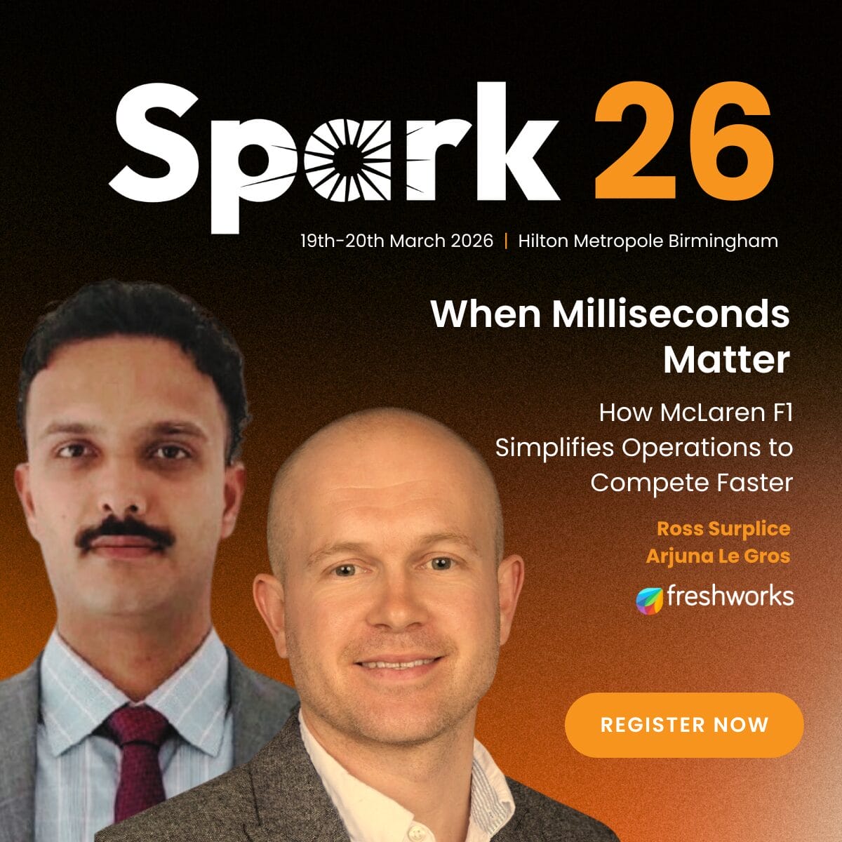 As Headline Sponsor of Spark26, Freshworks is taking pole position with a keynote exploring how the McLaren Formula 1 Team and top IT teams strip out complexity and operate at race pace.